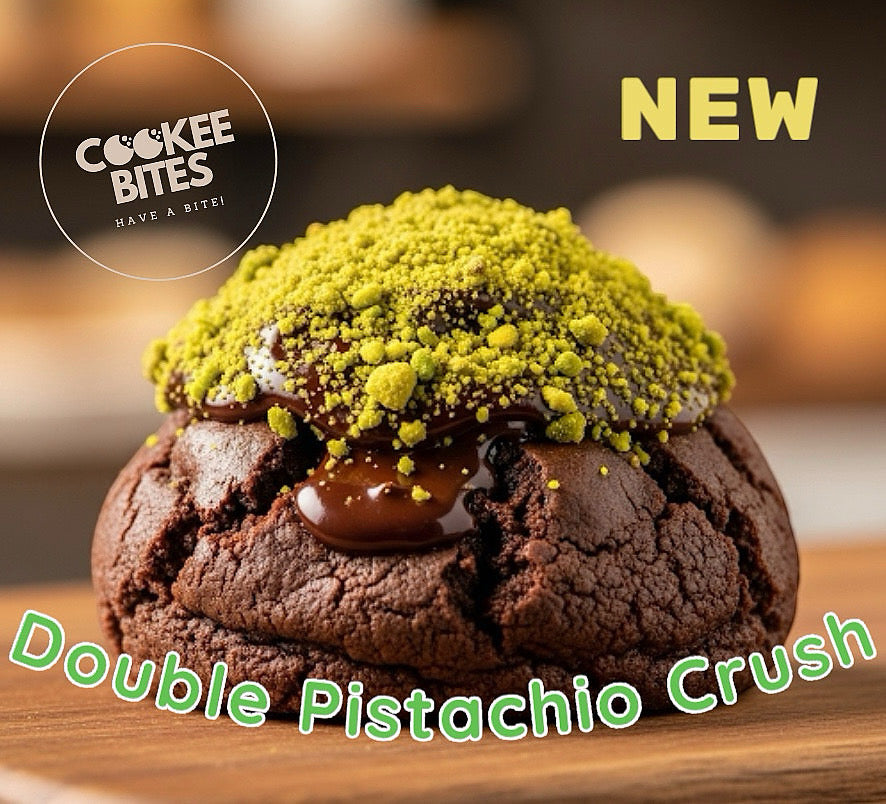 Get ready for your new obsession. Our rich, fudgy chocolate cookee is filled with a molten core of luxurious Dubai-style pistachio cream. It's finished with a decadent chocolate drizzle and a generous crown of crushed pistachios for the perfect crunch. It's double the pistachio, double the delight.